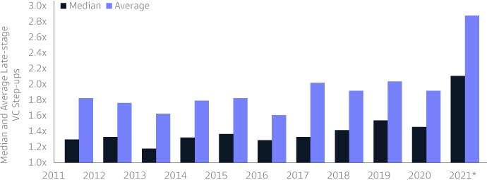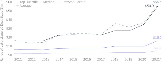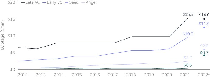 4Pitchbook, as of 3/31/2022. Deal counts in late-stage venture include both recorded deals and estimated deals, based on historical patterns of deals reported with a lag beyond the data release period.